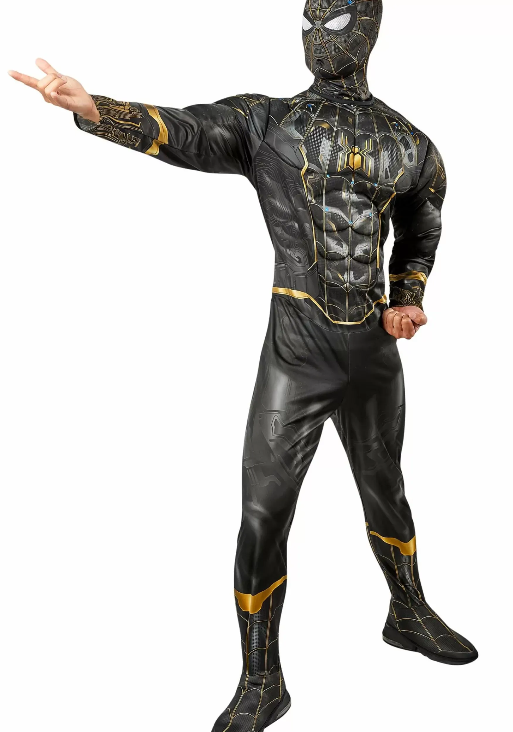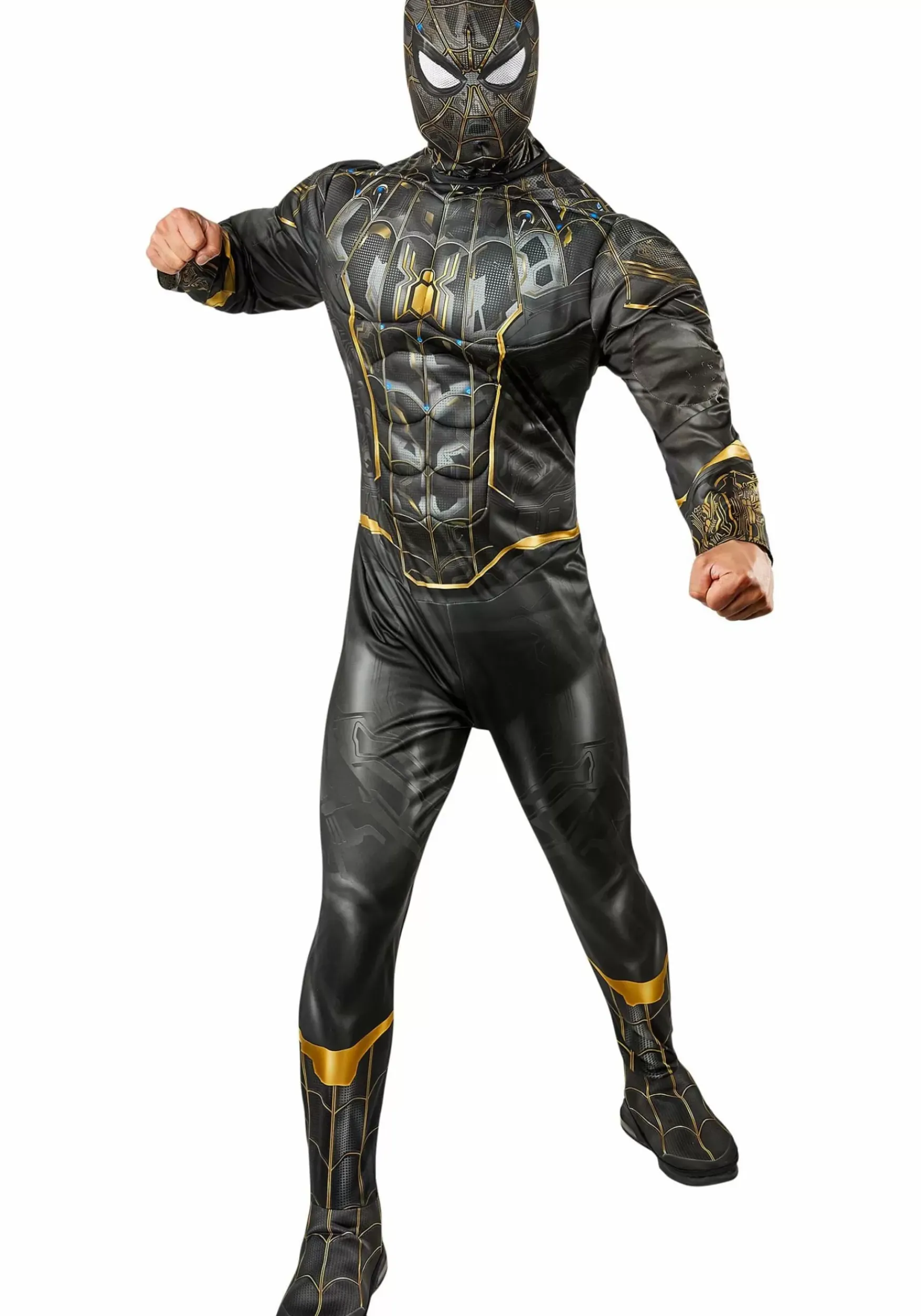 Update Your Collection Of Super Suits With This Marvel Deluxe Inside Out Spider-Man Adult Costume! Based On One Of Spidey’s Suits Turned Inside Out (As Seen In Spider-Man: No Way Home), This Officially Licensed Look Ensures You Have The Freshest Item In The Superhero’s Arsenal. Including Just Two Pieces, The Easy-To-Wear Ensemble Has Everything You Need To Transform Into Your Favorite High-Tech Hero. The Long-Sleeved Jumpsuit Secures Easily In The Back With Hook-And-Loop Closures. Padding In The Shoulders And Chest Give The Costume The Look Of A Muscular Build. Meanwhile, The Black Material Is Printed With What You’D Expect To Find Inside One Of Spidey’s Advanced Suits, Including Intricate “Circuits,” “Lights,” And Golden “Plates” That Create An Intriguing And Sleek Appearance. Attached Shoe Covers Ensure Your Preferred Footwear Fits The Overall Ensemble. And The Mask Slips Over Your Head To Provide The Costume A Pair Of Mesh Spider Lenses.