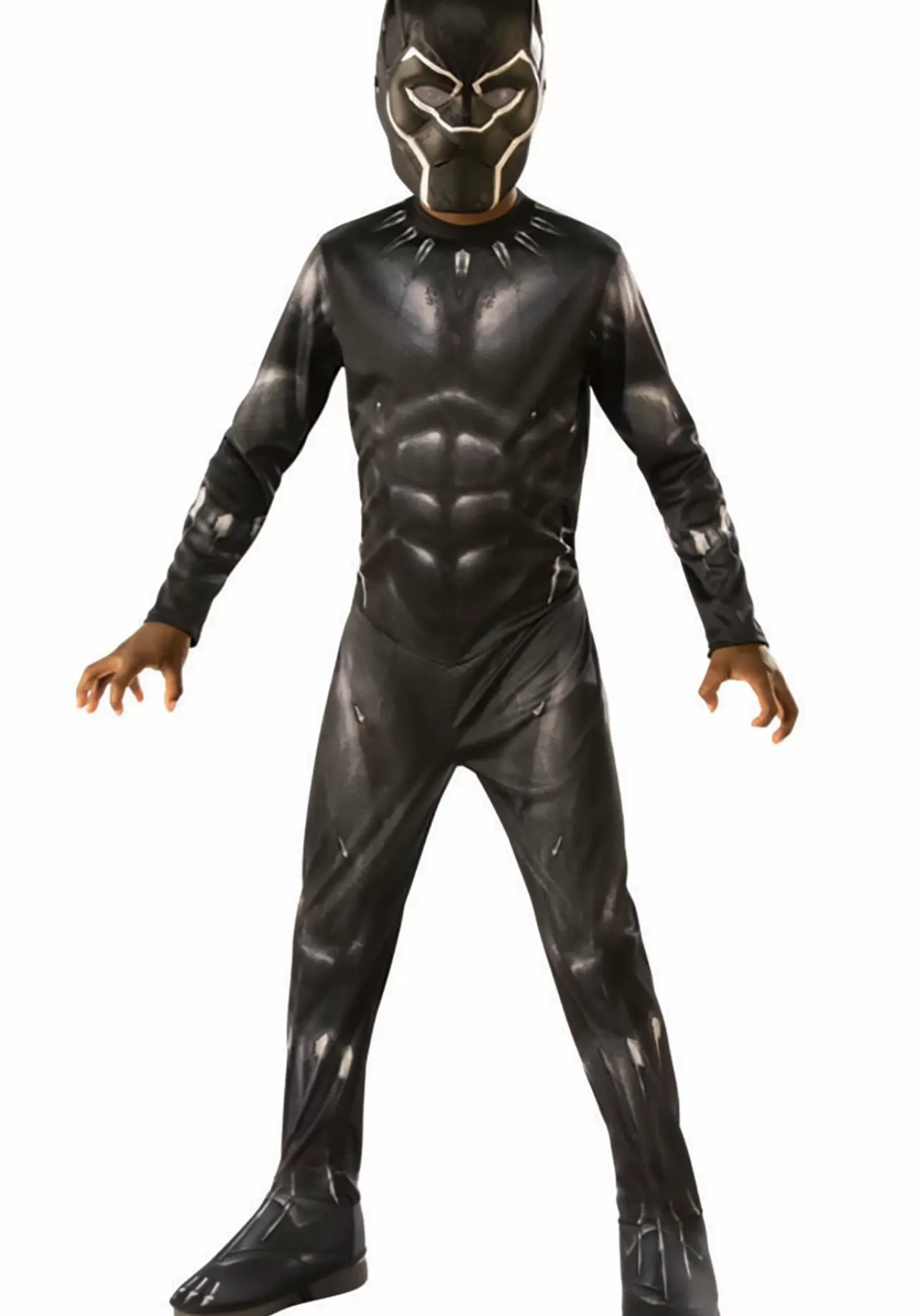 The Whole Neighborhood Will Be Chanting “Wakanda Forever!” When Your Child Wears This Officially Licensed Black Panther Avengers 4 Costume For Children! The One-Piece Jumpsuit Is Made Of Shiny Black Material That Moves Easily With Your Child Whether He Or She Is Trick-Or-Treating Or Practicing High Kicks. The Suit Is Printed With Graphics Of Armor As Well As The Necklace From Which The Suit Transforms. The Shoe Covers Stay In Place Thanks To The Elastic Bands That Attach Under Your Child’s Footwear. The Mask Covers The Entire Face With Viewing Ports For The Eyes, And Features Panther Ears And Facial Features.