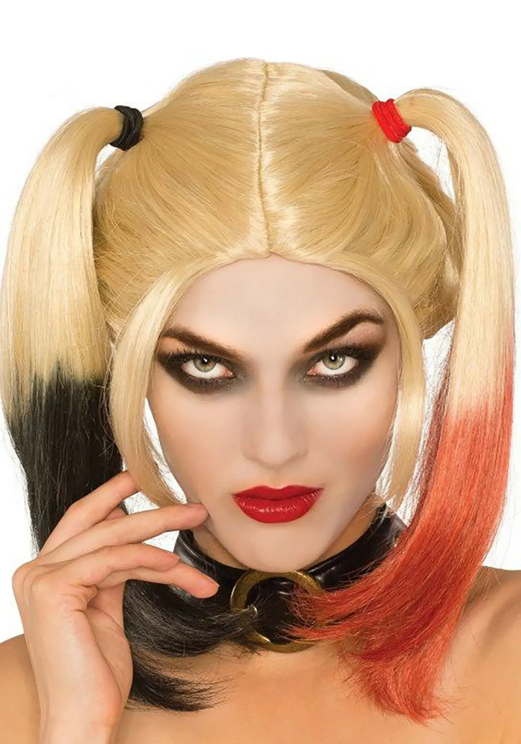 Cross The Boundary Of Insanity With The Women’s Deluxe Harley Quinn Wig And Get Ready To Paint The Town Everything. This Blond Wig Is Made Even More Vivid With A Splash Of Black And Red To Match Her Frequent Costume Color Pallete. Made Of Kanekalon Fiber, This Wig Is Like Few Others, Breathable And As Real-Feeling As Your Own, And Able To Be Shampooed To Boot! Join Your Already Fantastic Hair Style With One Of Many Harley Quinn Costumes And You Might Even Lure Mr. J. To Come Out Of Hiding To Help Add His Own Unique Style Of Humor To Your Antics.
