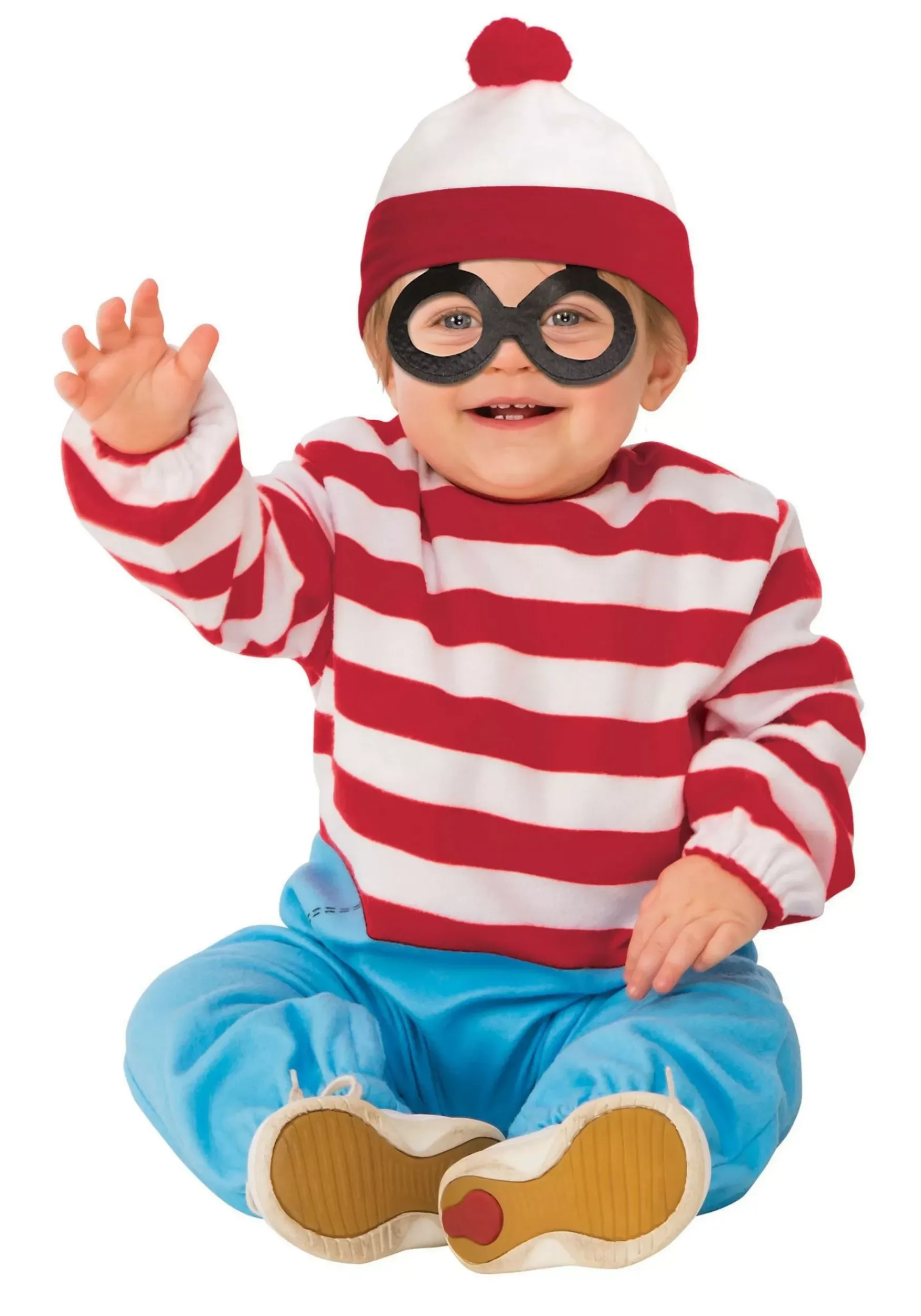 This Insanely Cute Romper Is Styled To Look Like Waldo’s Signature Shirt And Pants Combo. The Top Is Boldly Striped In Red And White, And The Bottom Looks Like Denim Pants. You’Ll Want To Add The Signature Beanie And Some Form Of Black Glasses. You Can Give Your Kiddo A Backpack To Tote Around With A Walking Stick, Kettle, Cup, Sleeping Bag, Binoculars, Camera, Snorkel, Belt, And Shovel, But We Doubt They’Ll Get Far Without Leaving Pieces Of It Behind!