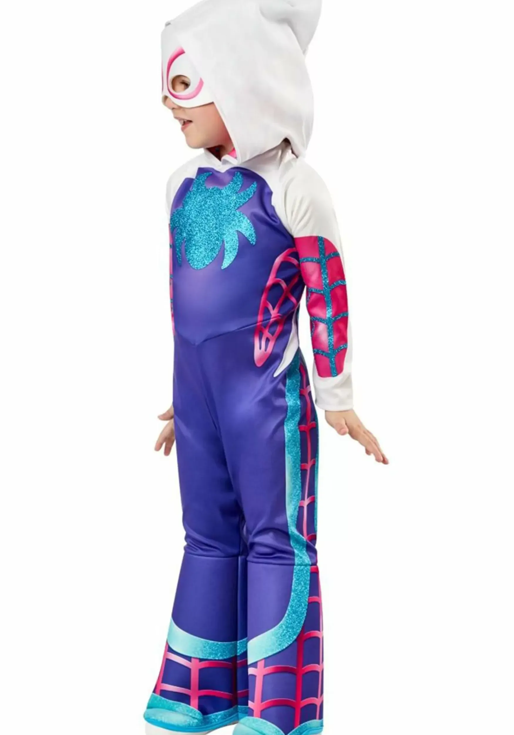 It Is Time To Start This Comic Caper Off Right By Letting Your Tyke Climb Into This Officially Licensed Marvel Deluxe Ghost Spider Costume For Toddlers. This Adorable Jumpsuit Is Inspired And Designed After The Iconic Look Of Spider-Gwen, Combining Pink Perfection, Brilliant White, And Glittering Blue For A Stellar Color Combo. Boot Covers Are Attached To The Bottoms So Your Kiddo Can Still Wear Their Normal Shoes While They Are Web-Walking. The Hood Pulls Up And Features A Sparkling Web Lining For A Total Transformation! All That Is Left Is To Find The Right Adventure.