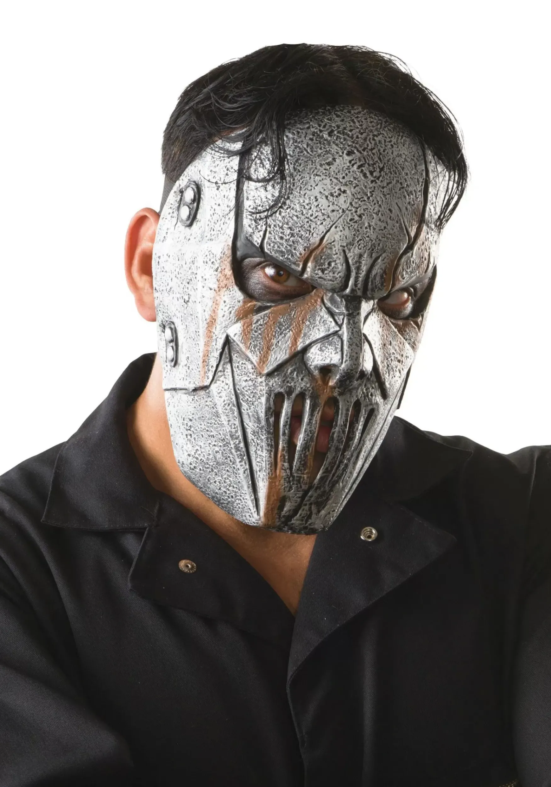 As You Know, Mick Thomson’s Days Of Wearing A Store Bought Hockey Mask Are Long Gone. Now His Appearance Is As Hardcore As His Music! Grab Your Guitar And Don The Slipknot Mick Mask. Your Fingers Might Just Be Compelled To Play The Chords To “Psychosocial.” Who Knows, Maybe You’Ll Even Feel The Urge To Get The Word “Seven” Inked On Your Left Forearm Next!