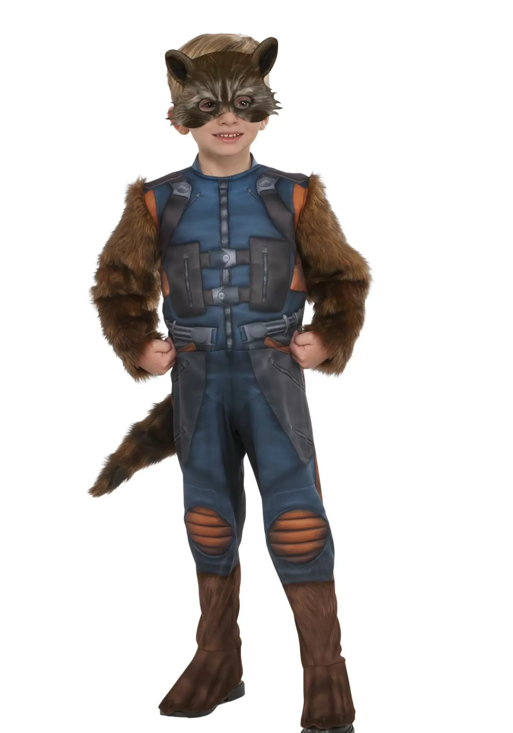 The Costume Comes With A Full-Body Jumpsuit With Printed Details On The Exterior. The Sleeves And Feet Have Faux Fur On The Exterior To Make Your Child Look Like The Crazy Critter From The Movie. The Pants End In Boot Covers, So Your Child Can Wear His Normal Shoes Underneath This Outfit. Finally, The Face Mask Fits With Elastic And Has A Pair Of Raccoon Ears Molded Into The Top. Your Little One Will Feel Just Like The Legendary Raccoon In No Time!