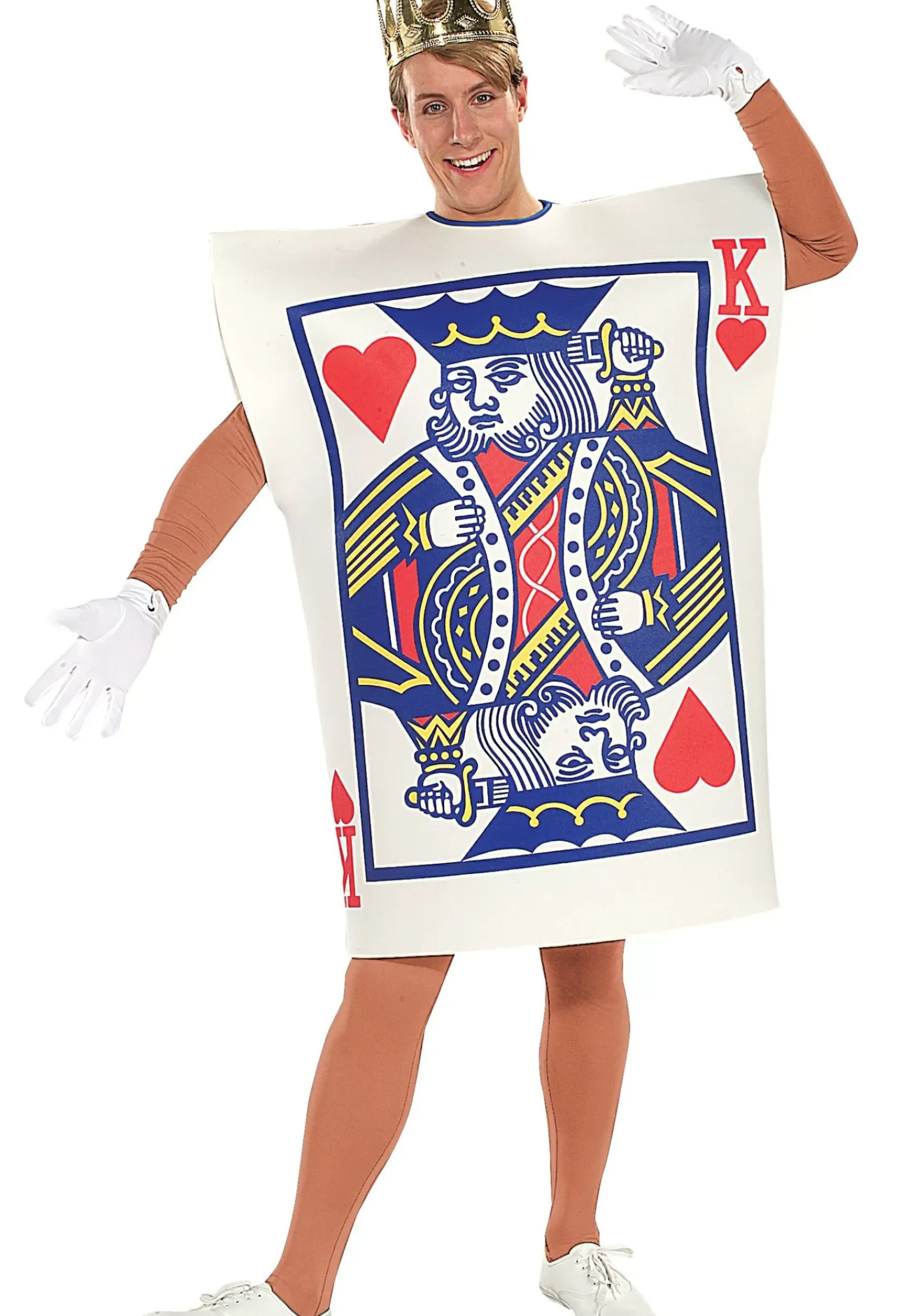 This Easy To Toss-On Costume Will Instantly Transform You Into The Most Valued Card In Any Deck. What Really Makes The King Of Hearts Stand Out From The Rest Of The Face Cards Is A Unique Feature. He Is The Only King Without A Mustache! The Other Three Kings Feel As If They Need To Compensate For Something And Prove Their Manliness With Facial Hair. You, However, Have Nothing To Hide, Hence Your Hairless Upper Lip! This Costume Comes With The Card Tunic And A Golden Crown; Just About Everything You Need For A Costume Party. You Can Also Take A Look Through Our Bodysuits To Find One To Throw On Under The Tunic. We Would Suggest A Flesh Colored One Or A Simple Black One. Then A Pair Of White Gloves Along With Some White Sneakers And You’Ll Be Ready To Hit The Party Scene!