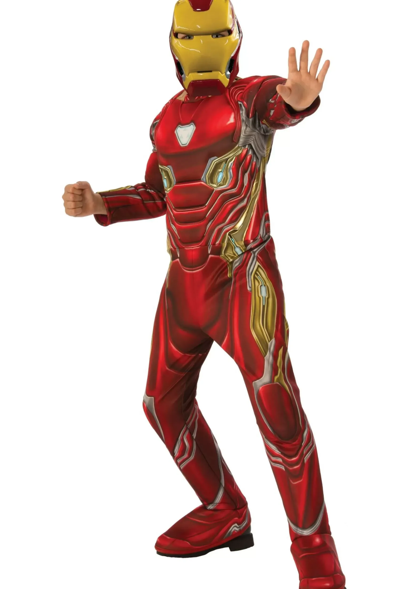 This Officially Licensed Marvel Infinity War Iron Man Costume Is A Deluxe Costume For Kids. It Comes With A Full-Body Jumpsuit. The Exterior Of The Suit Has Printed Armor Details, Including Iron Man’s Bright Red Armor Pieces And Plenty Of Gold Accents. It Even Has A White Printed Reactor In The Front Of The Chest. Attached Boot Covers Let Your Child Wear Their Favorite Pair Of Shoes With The Costume While Still Getting The Full Avengers Look. The Final Piece To The Outfit Comes In The Form Of The Molded Mask, Which Recreates Tony’s Newest Helmet From The Film.