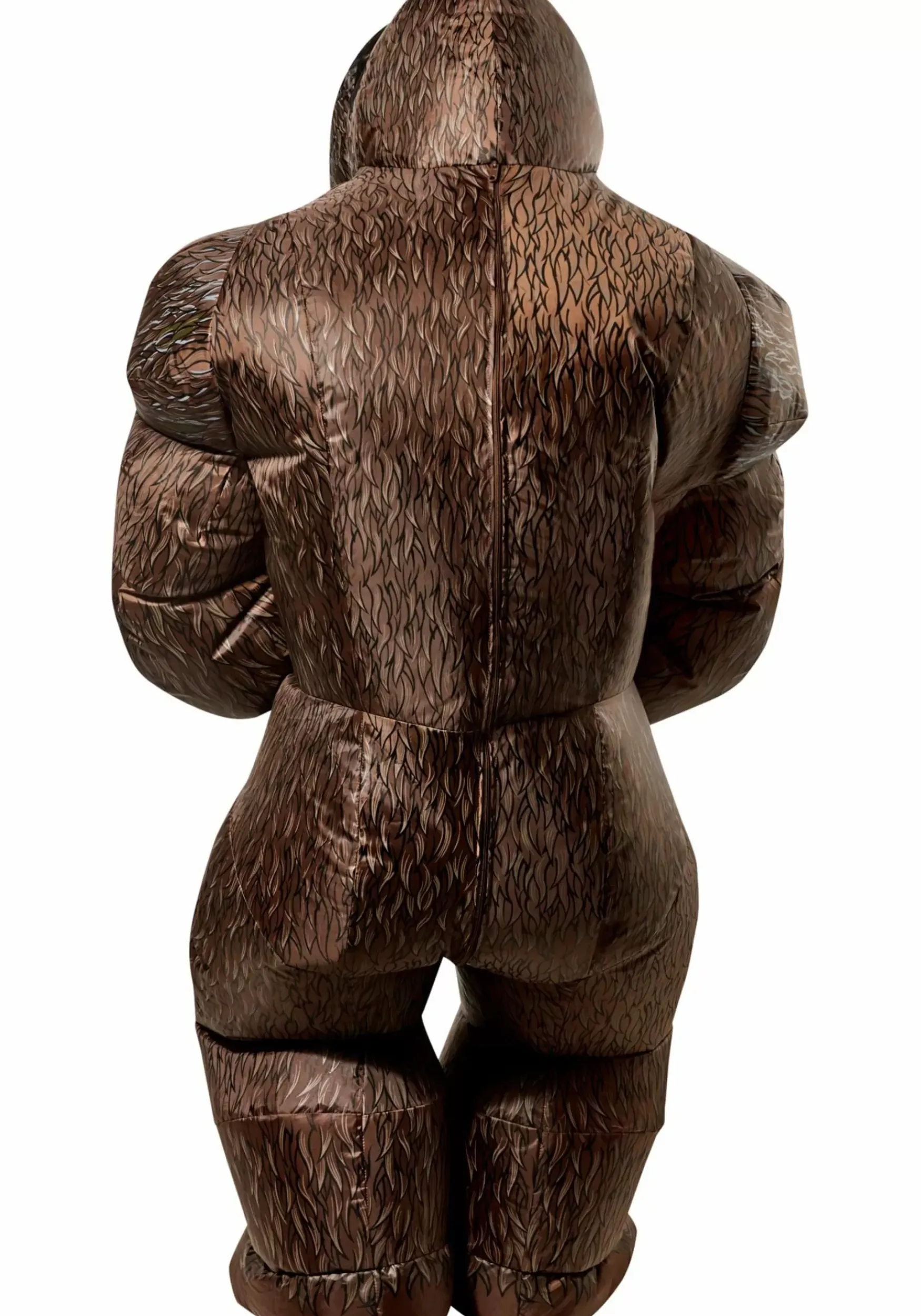 - Enclosed Head Of Bodysuit Has Inner Hood W/ Elastic Neck Band, Mesh-Covered Character Mouth For Limited Vision