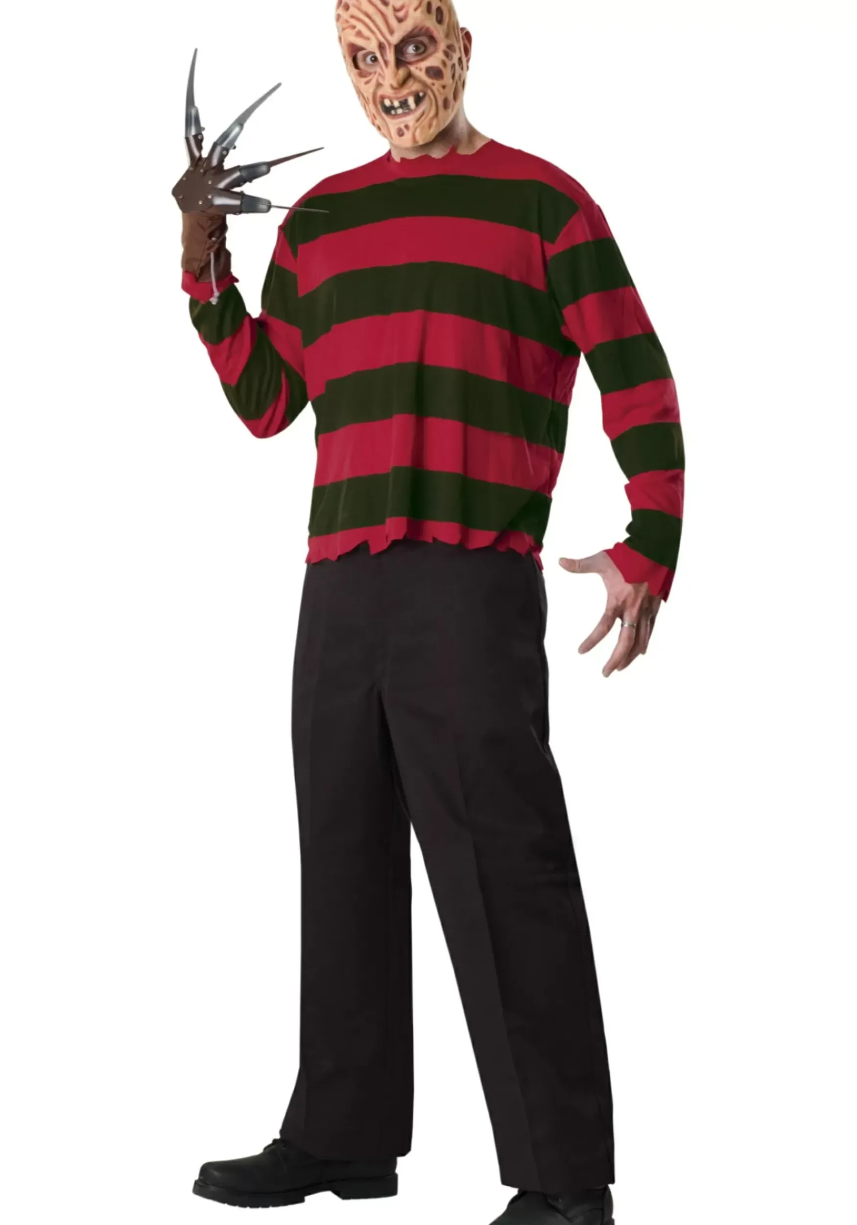 While You’Re Mulling That Over, Let’s Get You Suited Up In Some New Threads! This Adult Freddy Costume Is Made Of 100% Polyester And Includes A Red And Green Long-Sleeved Shirt That Features Tattered Edges On The Sleeves And The Bottom Of The Shirt. It Even Comes With A Polyfoam Freddy Mask! Pair It With Our Replica Freddy Krueger Glove That Will Help You Feel Like More Of A Whole Person While You’Re Trying To Decide Whether Or Not You’Re Ready To Take A New (Undead) Life Direction. Maybe It’s Time To Start Invading Your Own Dreams And Making Them Real, Huh, Pal? Yeah, We Think So, Too!