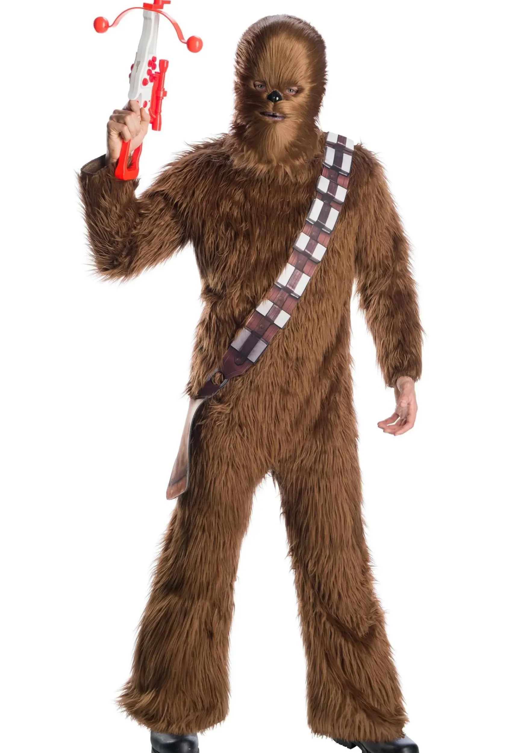 This Costume Is Based On The Iconic Character From The Star Wars Movies. The Costume Comes With A Full Jumpsuit, Which Is Covered In A Layer Of Brown Faux Fur. It Fits With A Fastener In The Back, Making It Easy To Fit Into This Furry Outfit. A Foam Sash And Pouch Are Attached To The Front Of The Suit To Help Recreate His Satchel From The Movies. The Mask Is Made Out Of Molded Plastic And Even Comes With A Layer Of Faux Fur On The Front. It Fits Easily With An Elastic Band, Giving You The Full Transformation Into The Iconic Star Wars Character.