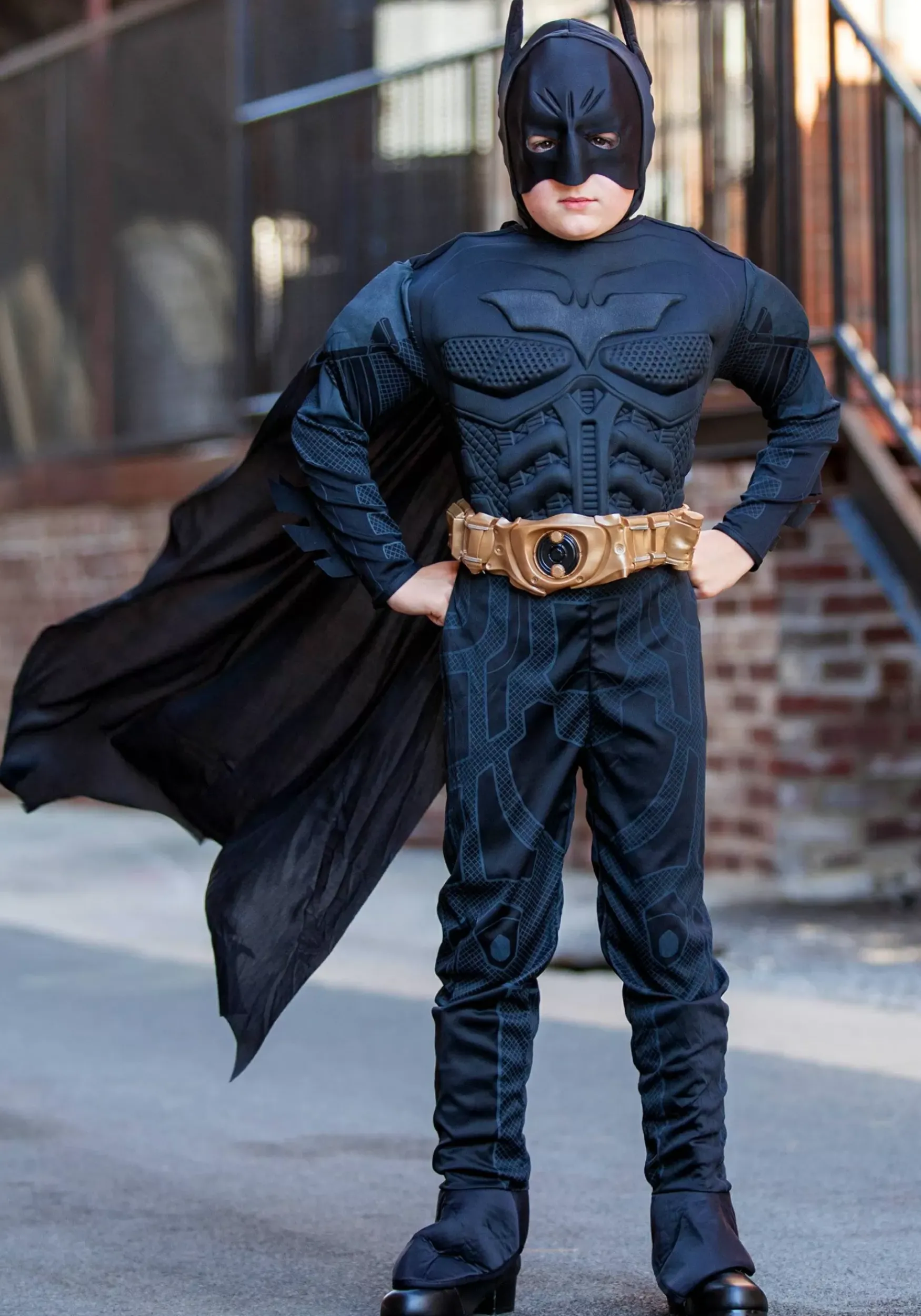 Is He Ready To Take On The Threat Bane Is Posing To Gotham City? Your Child Can Be The One Who Responds To The Bat Signal In This Toddler Dark Knight Batman Costume! As A Muscle Chest Enhanced Batman Jumpsuit, It Features Has A Polyfoam Details That Have Serious Molded Muscle Definition. This Costume Has The Classic Details Like A Cowl Headpiece, Cape, And Boot Tops Are Attached To The Jumpsuit For A Seamless, Complete Look. When He’s Done Up In This Costume, He’Ll Be Ready To Answer The Call And Save Gotham City!