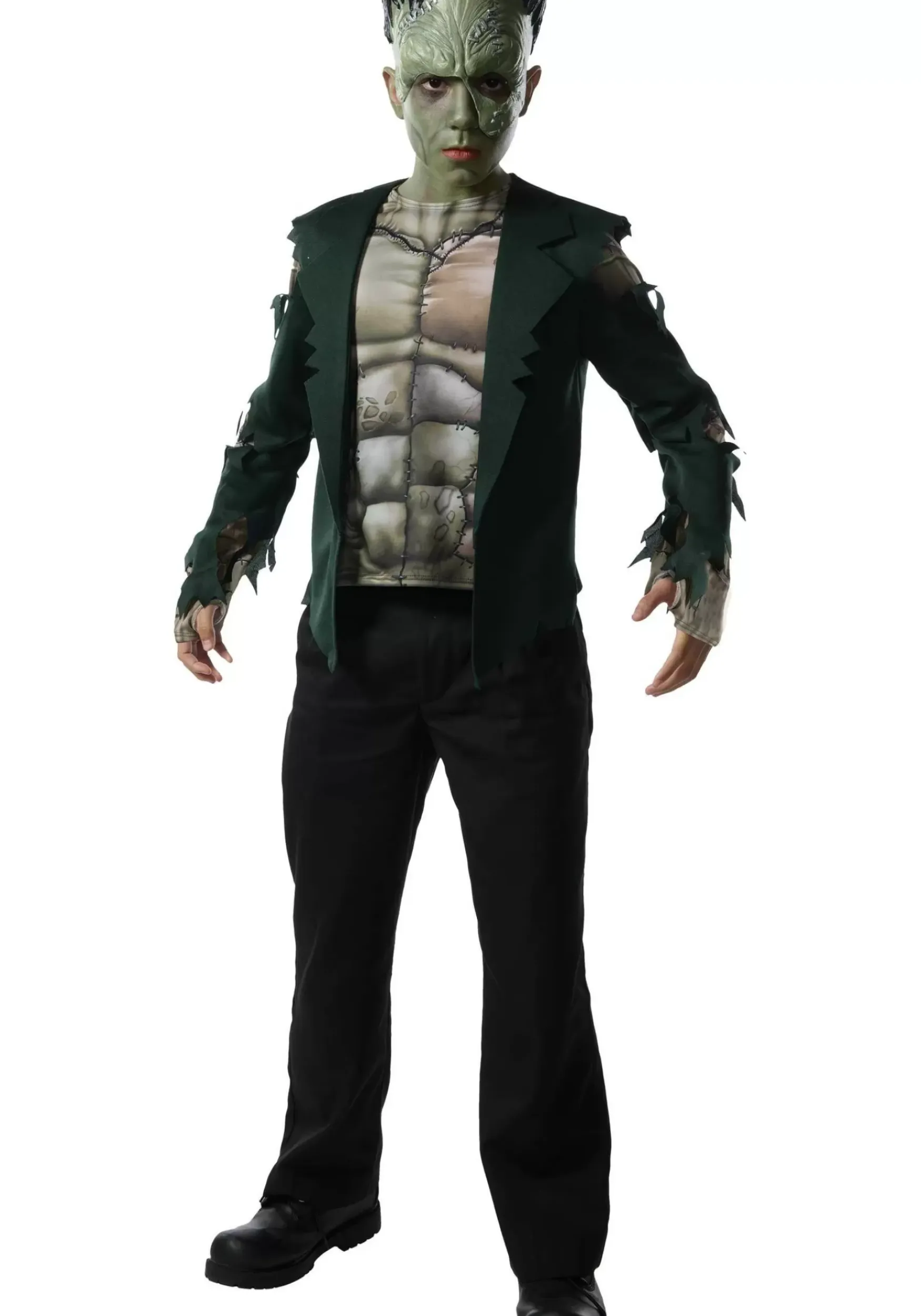 This Frankenstein Costume For Kids Helps Transform Your Child Into The Iconic Character From The Mary Shelley Novel. It Comes With A Jacket With An Attached Shirt. The Jacket Is Black And Has Some Tattered Sleeves To Recreate The Down-On-His-Luck Look Of The Creature From The Story. It Also Features A Foam Lapel, Because We Know That Frankie Likes To Look Classy When He Can. The Shirt Has Printed Details, Including Green Skin And Muscles, To Help Give Your Child A Classic Monster Look. Of Course, Your Child Can Fully Assume The Role Of Frankenstein’s Monster Without Wearing A Mask! This Costume Comes With A Molded Latex Mask That Fits Over The Top Of Your Child’s Face. Just Pair It With A Pair Of Your Child’s Favorite Pair Of Pants And They’Ll Be Ready To Introduce The World To A Kinder Monster! To Get The Full Look, Like Featured In The Image, You May Want To Add A Green Makeup Kit To Complete The Look.